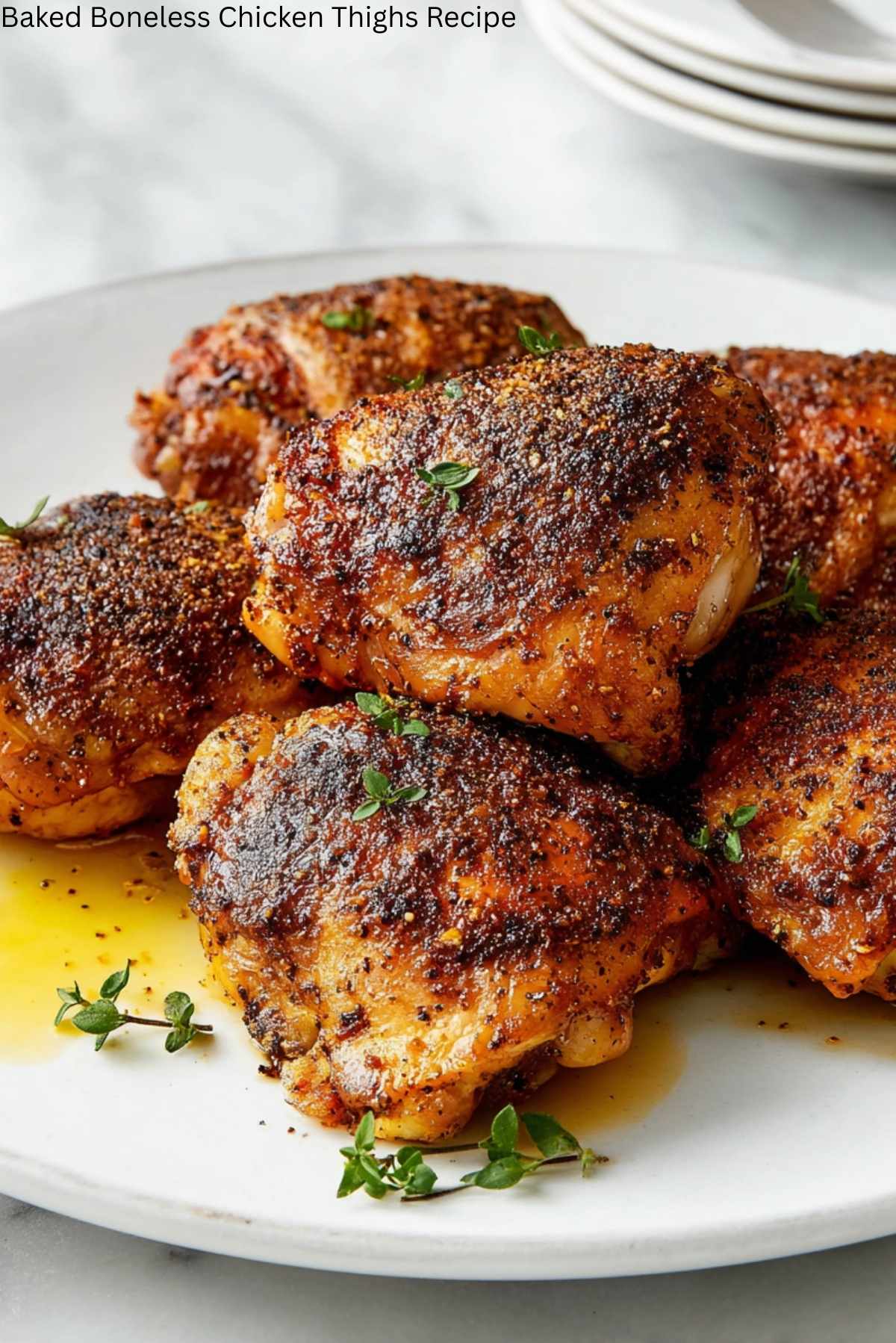 These baked boneless chicken thighs are juicy, flavorful, and easy to make. A perfect dish for a quick and delicious dinner!