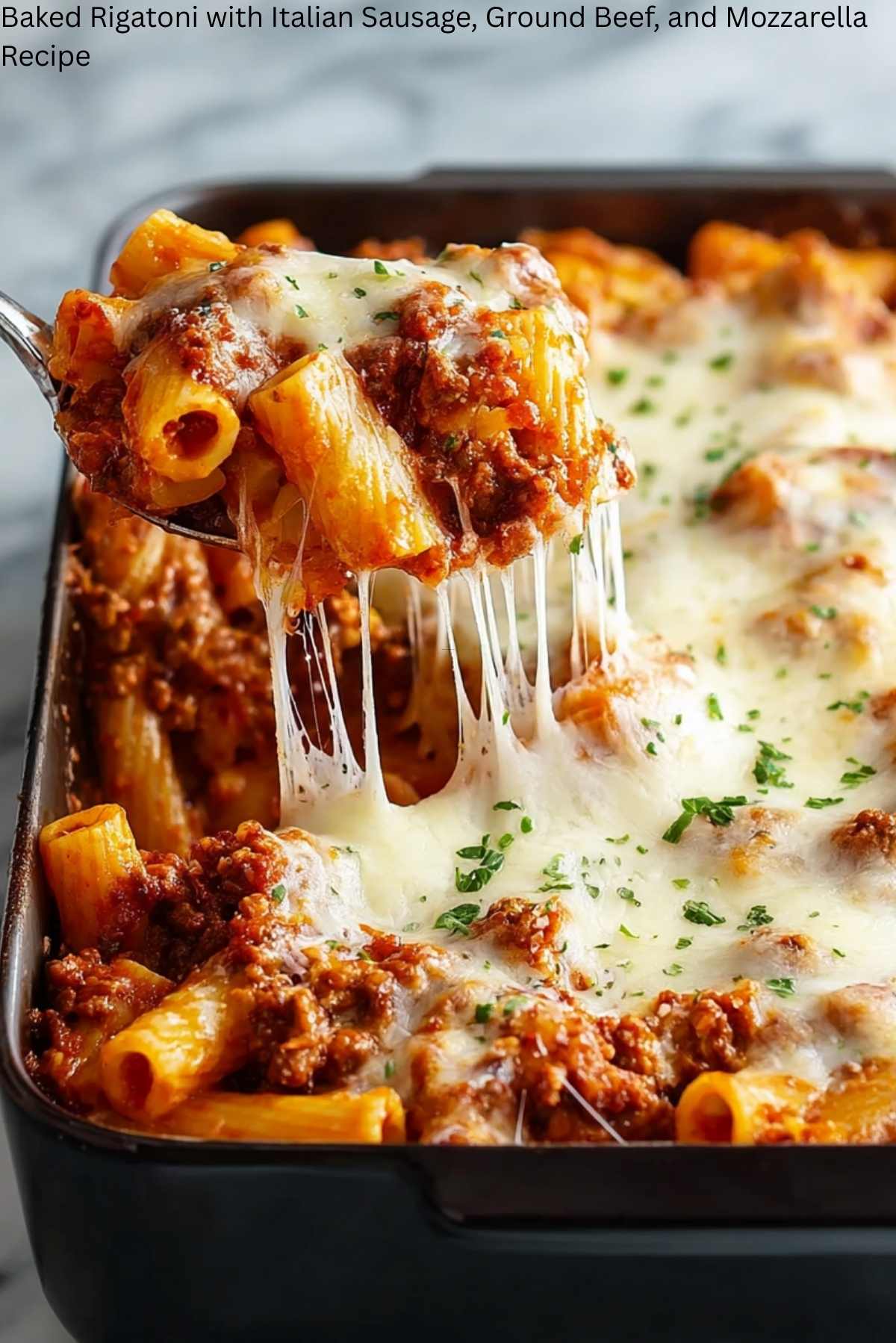 This Baked Rigatoni recipe is a comforting and hearty dish featuring Italian sausage, ground beef, and gooey mozzarella cheese. Perfect for a family dinner or gathering.