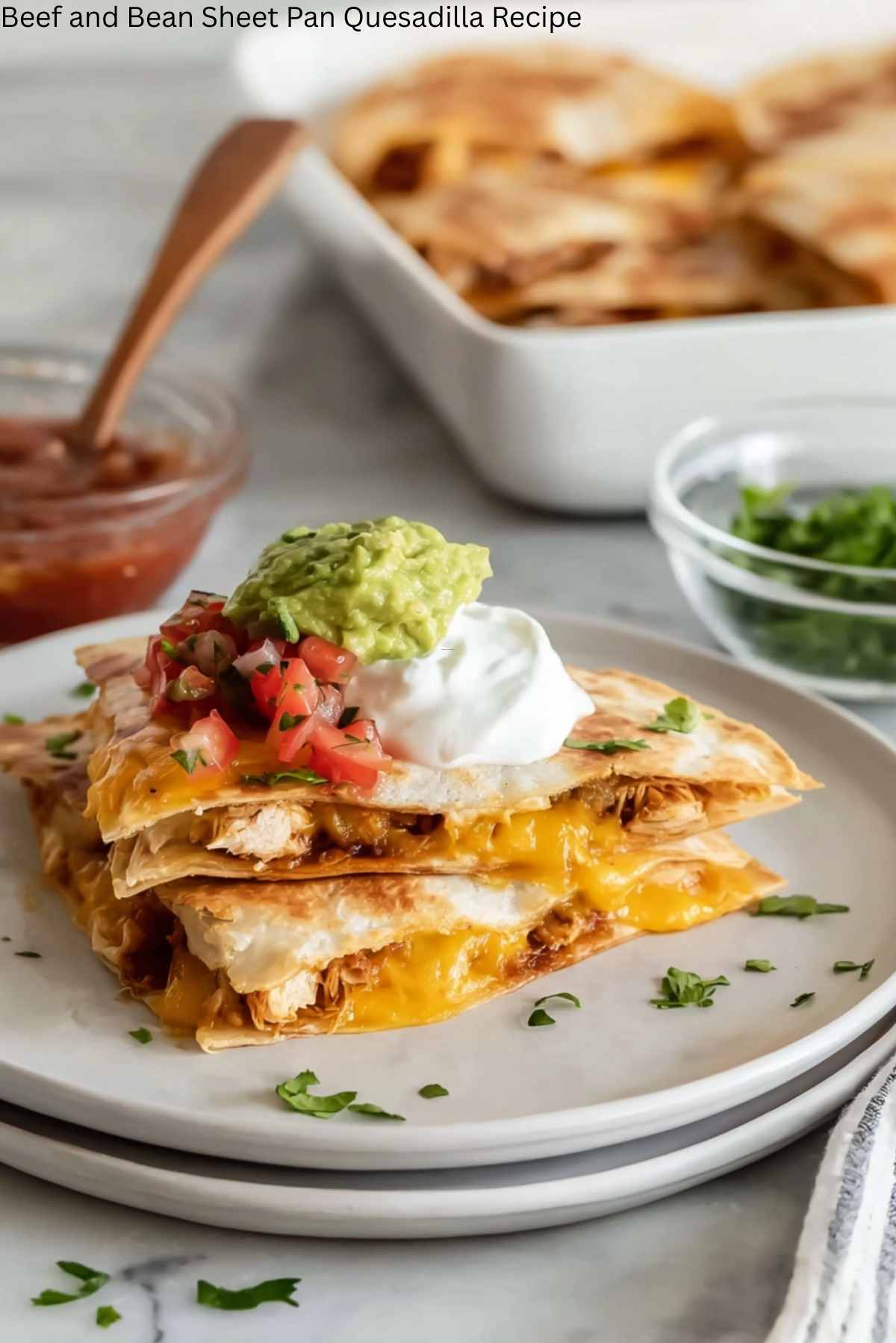 Try out this Beef and Bean Sheet Pan Quesadilla recipe for a delicious and satisfying meal that’s easy to make and perfect for any occasion. Don’t forget to share your feedback and enjoy this flavorful dish with friends and family!