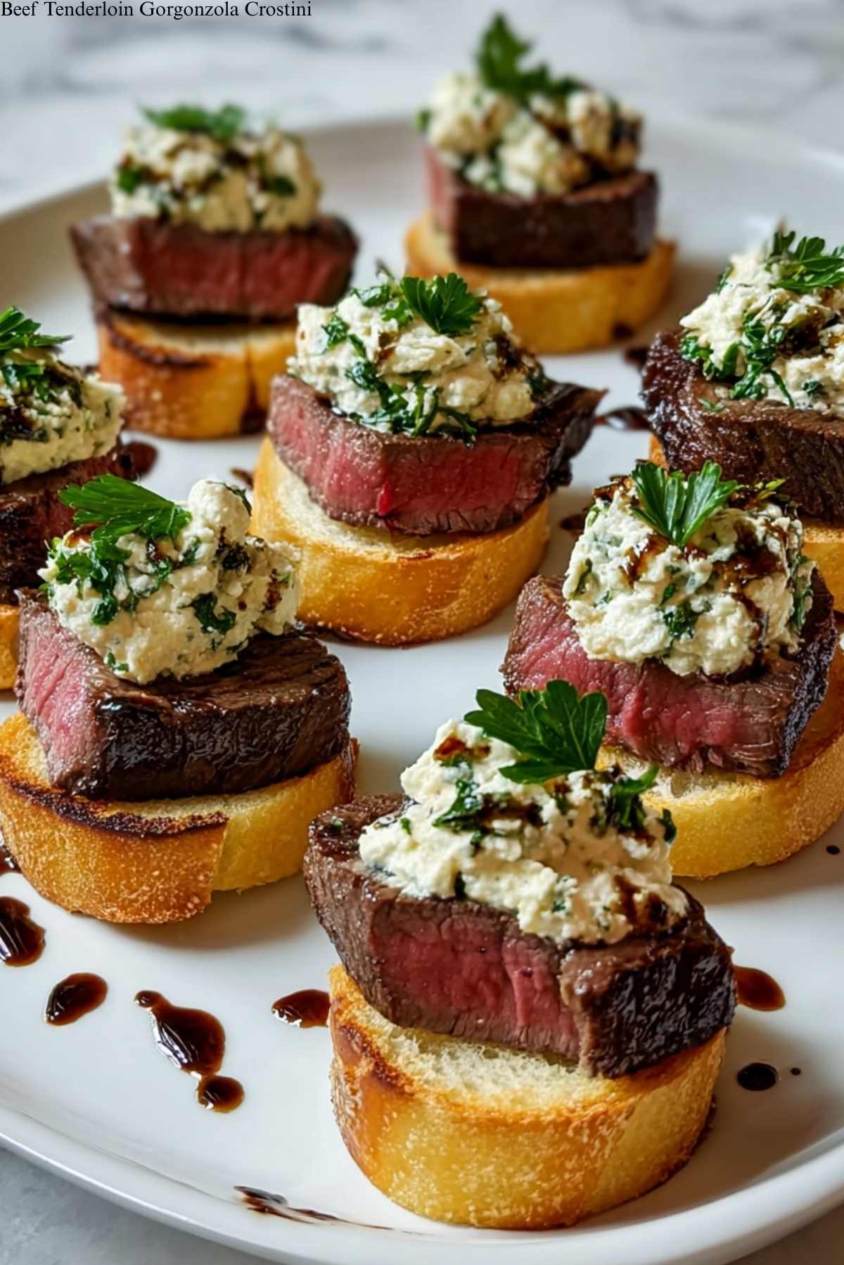 - Beef Tenderloin Gorgonzola Crostini is versatile and can be served as an appetizer or a light meal.