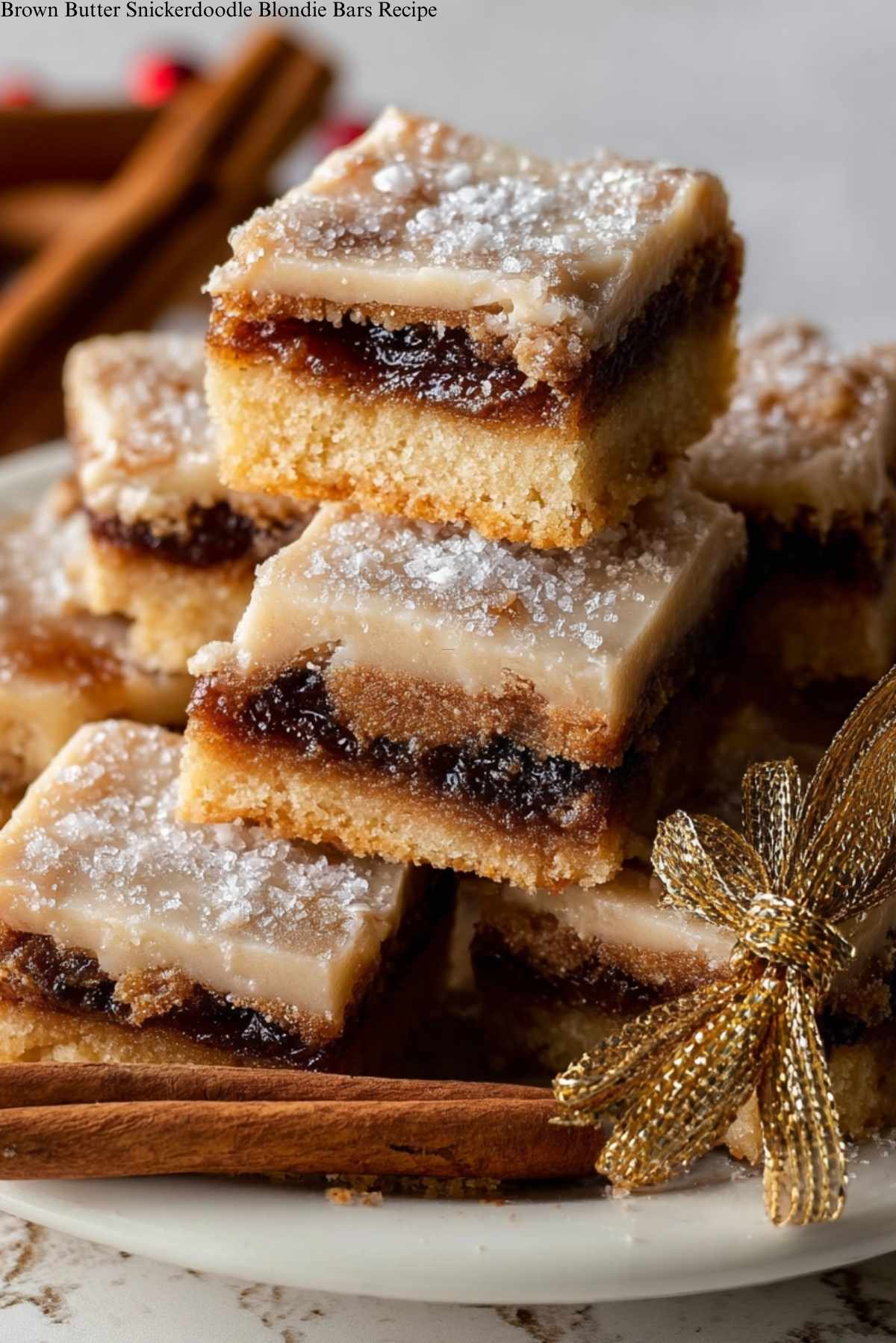 Indulge in the rich flavors of brown butter and cinnamon with these decadent Snickerdoodle Blondie Bars. A perfect balance of sweetness and warmth in every bite!