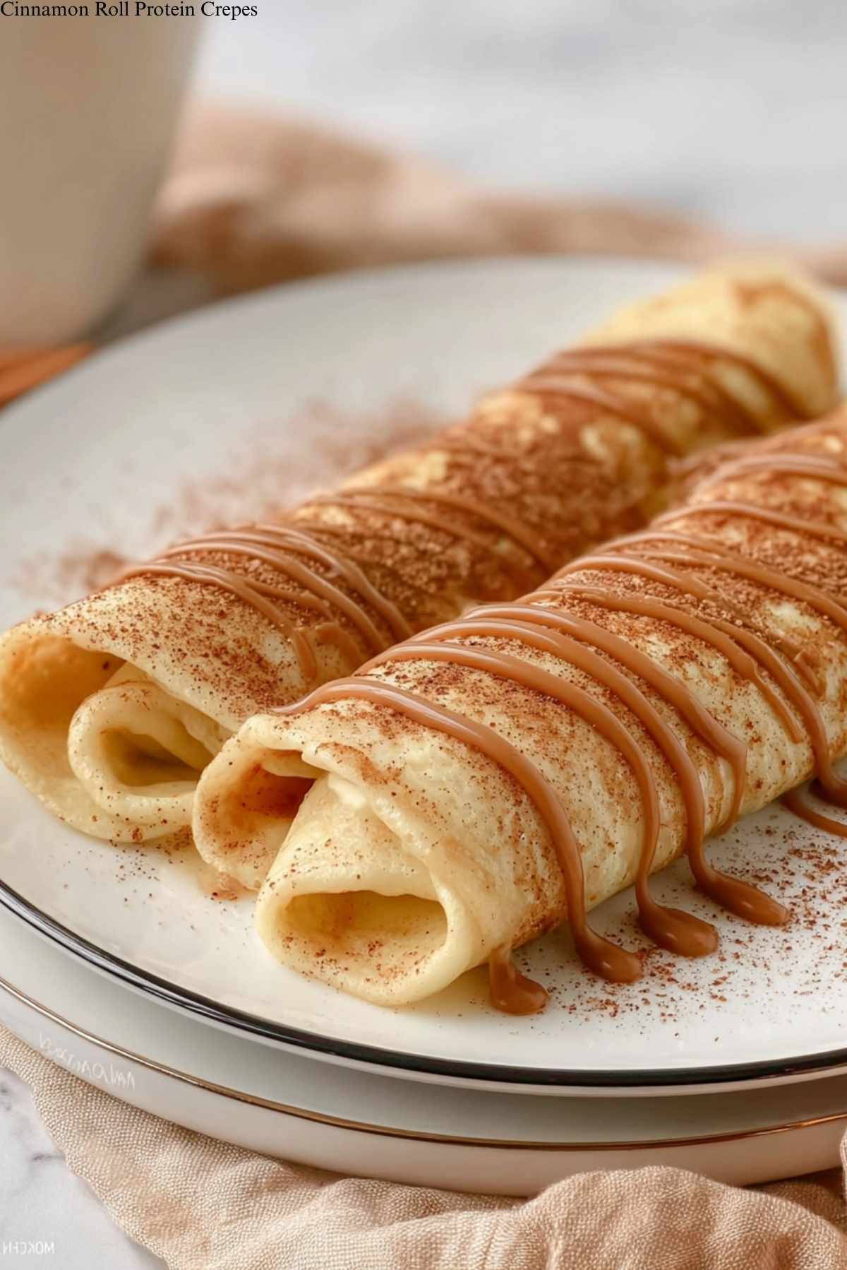 - Assemble: Spread the cinnamon yogurt filling on each crepe, roll them up, and sprinkle with sugar-free cinnamon sugar.