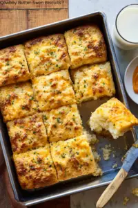 These Cowboy Butter-Swim Biscuits are rich, savory, and perfect for any meal. The buttery, cheesy biscuits are soaked in a flavorful cowboy butter mixture, making them irresistible.