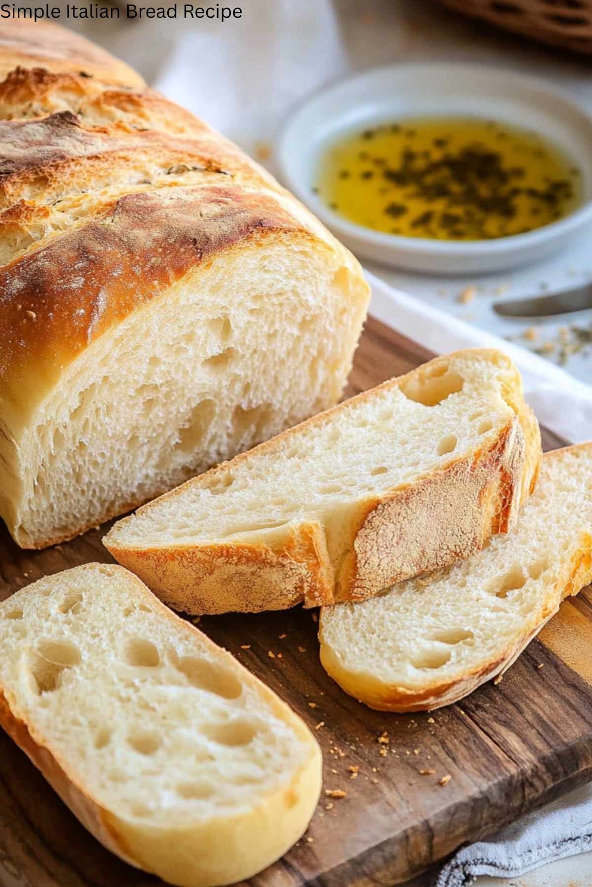 A simple and delicious Italian bread recipe that yields a golden-brown loaf perfect for dipping in olive oil or using for sandwiches.