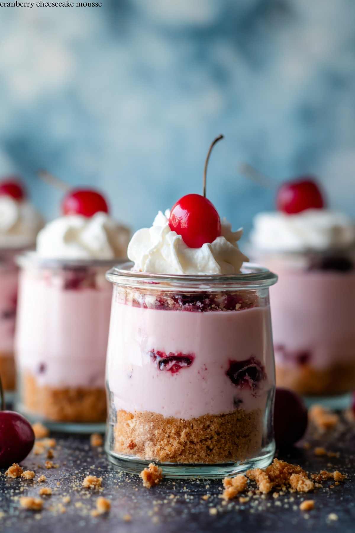- Make Cheesecake Mousse: In a mixing bowl, beat cream cheese, sugar, vanilla, and orange zest until smooth. Fold in whipped cream and cranberry mixture.