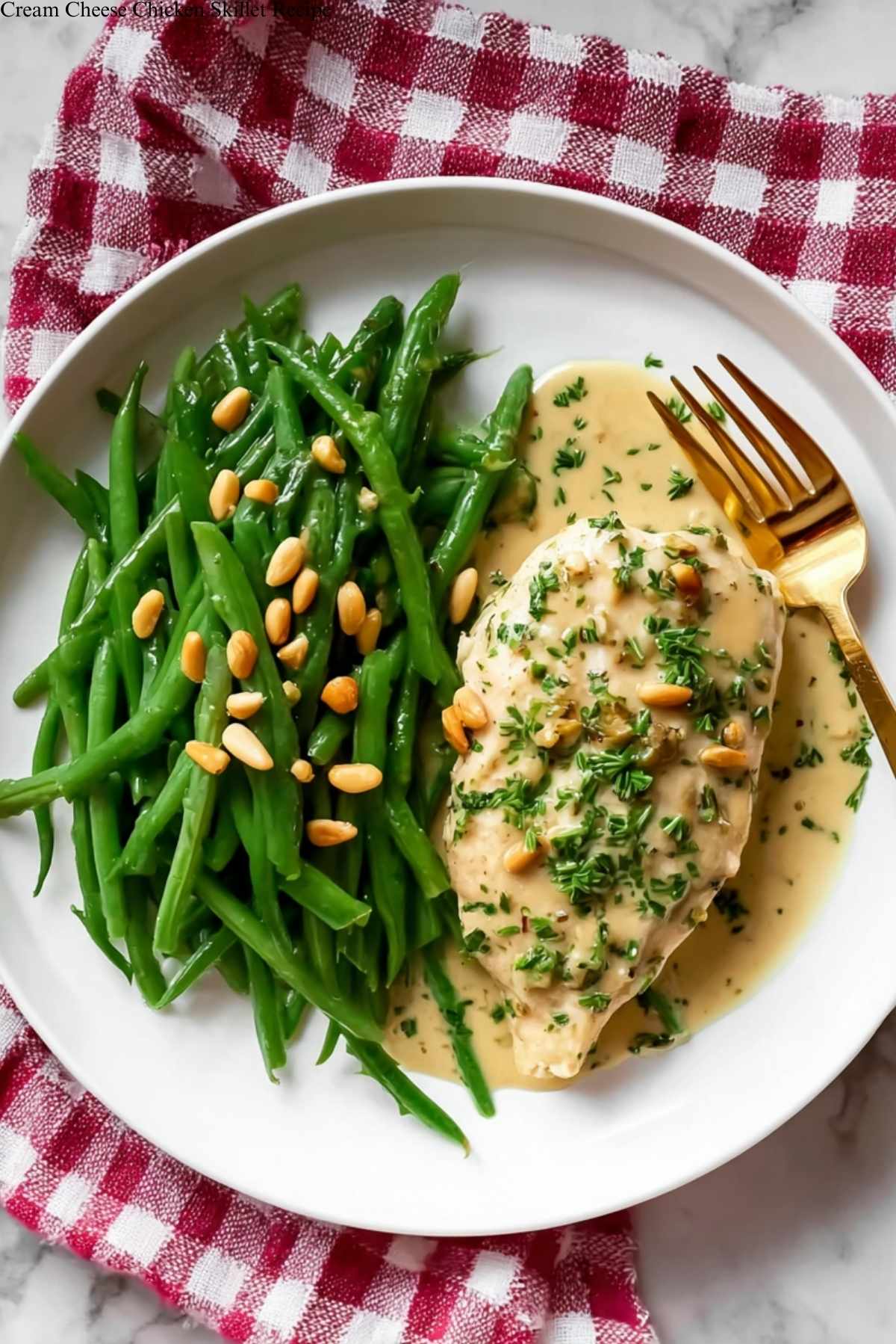 This Cream Cheese Chicken Skillet pairs well with a side of steamed vegetables or a simple green salad. For drinks, try a crisp white wine or a cold glass of lemonade.