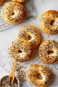 Enjoy the delicious taste of freshly baked bagels with this homemade bagels recipe. These bagels are chewy on the outside, soft on the inside, and perfect for a hearty breakfast or snack.
