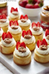 - Assemble: Layer the cake with the cream and top with Biscoff spread and strawberries.