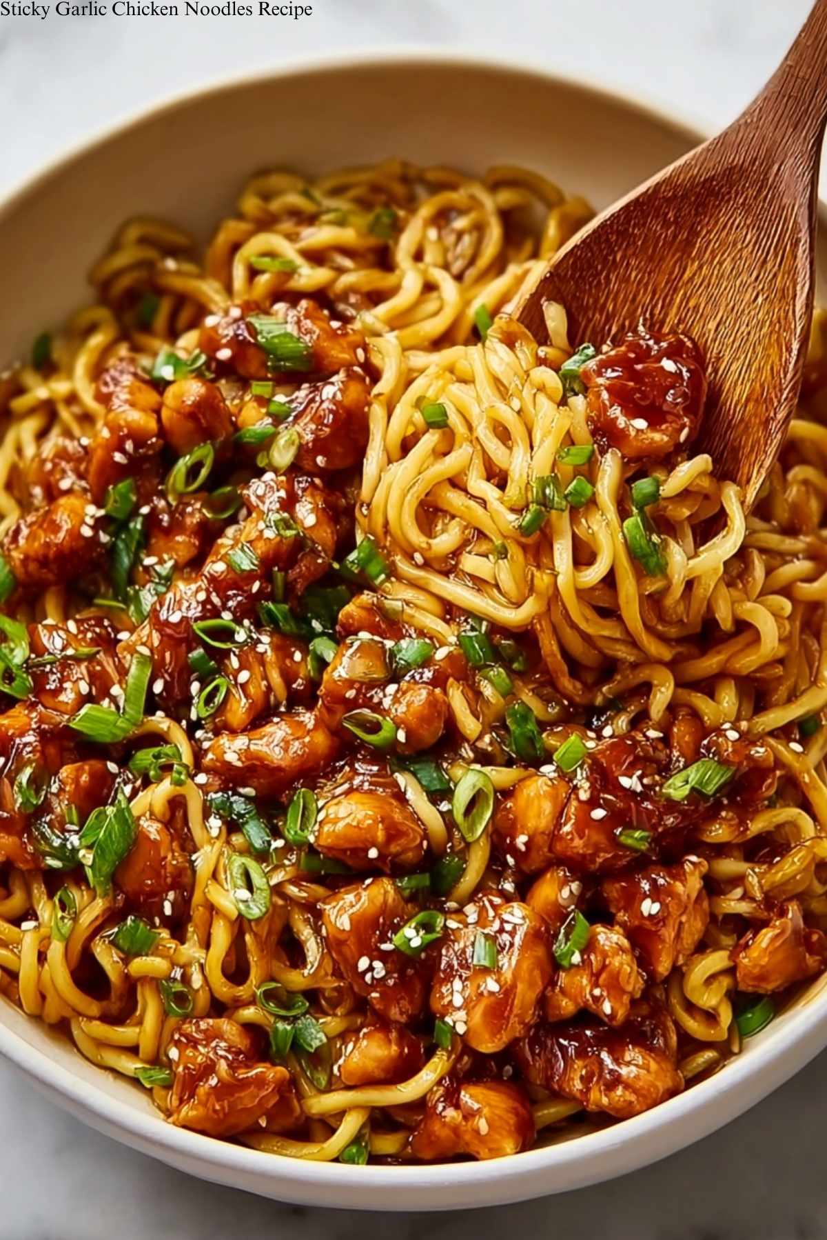 This Sticky Garlic Chicken Noodles recipe combines tender chicken pieces coated in a sticky, flavorful sauce, served over noodles for a satisfying meal.