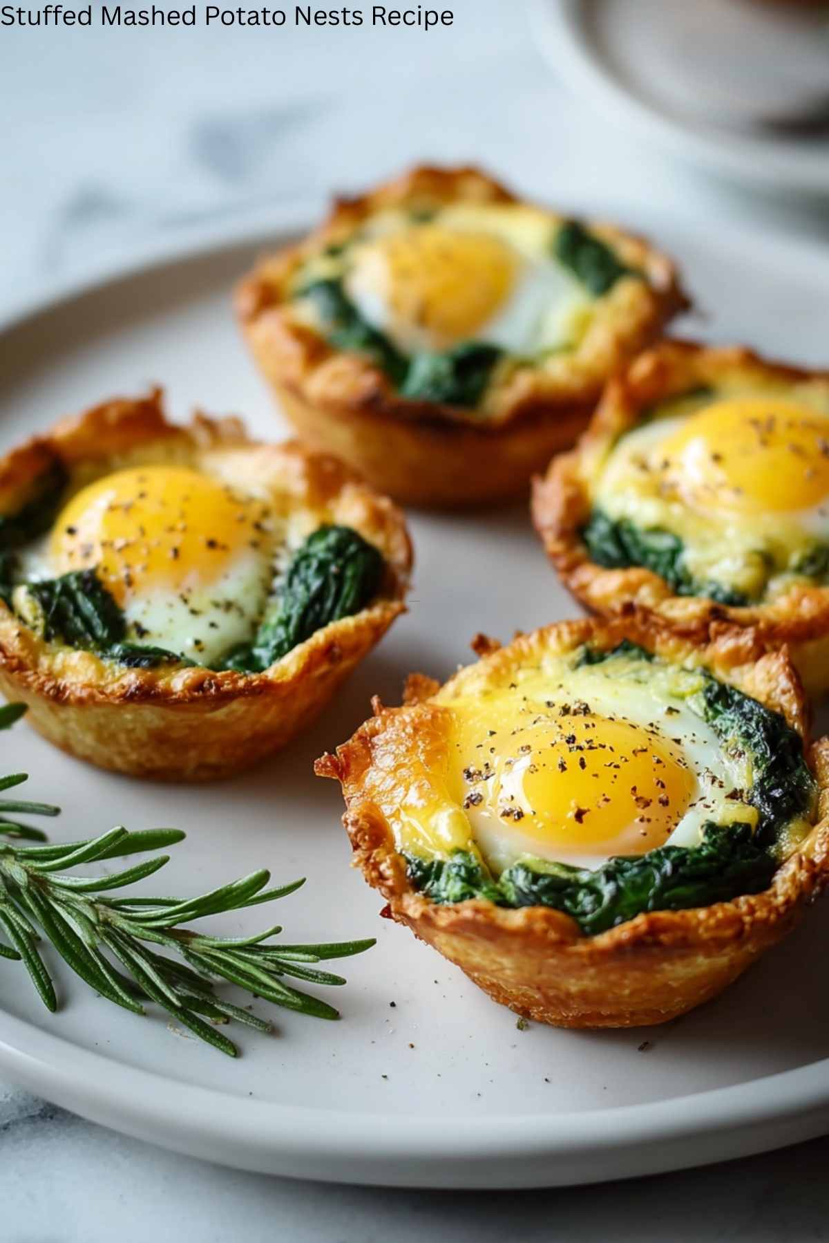 These Stuffed Mashed Potato Nests are a delightful twist on traditional mashed potatoes, filled with savory ingredients like ground turkey, scrambled eggs, sautéed spinach, and mushrooms. Topped with cheese and chives, they make a perfect appetizer or side dish for any occasion.