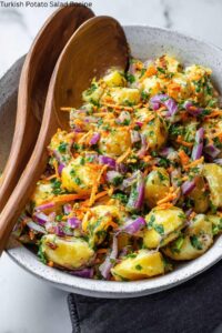 This Turkish Potato Salad Recipe is a flavorful and refreshing dish perfect for any gathering. Tender potatoes are mixed with a tangy dressing, fresh vegetables, and savory feta cheese for a delightful side dish.