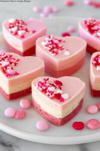- Add Decoration: Sprinkle heart-shaped sprinkles on top of the fudge. Chill until set, then cut into heart shapes.